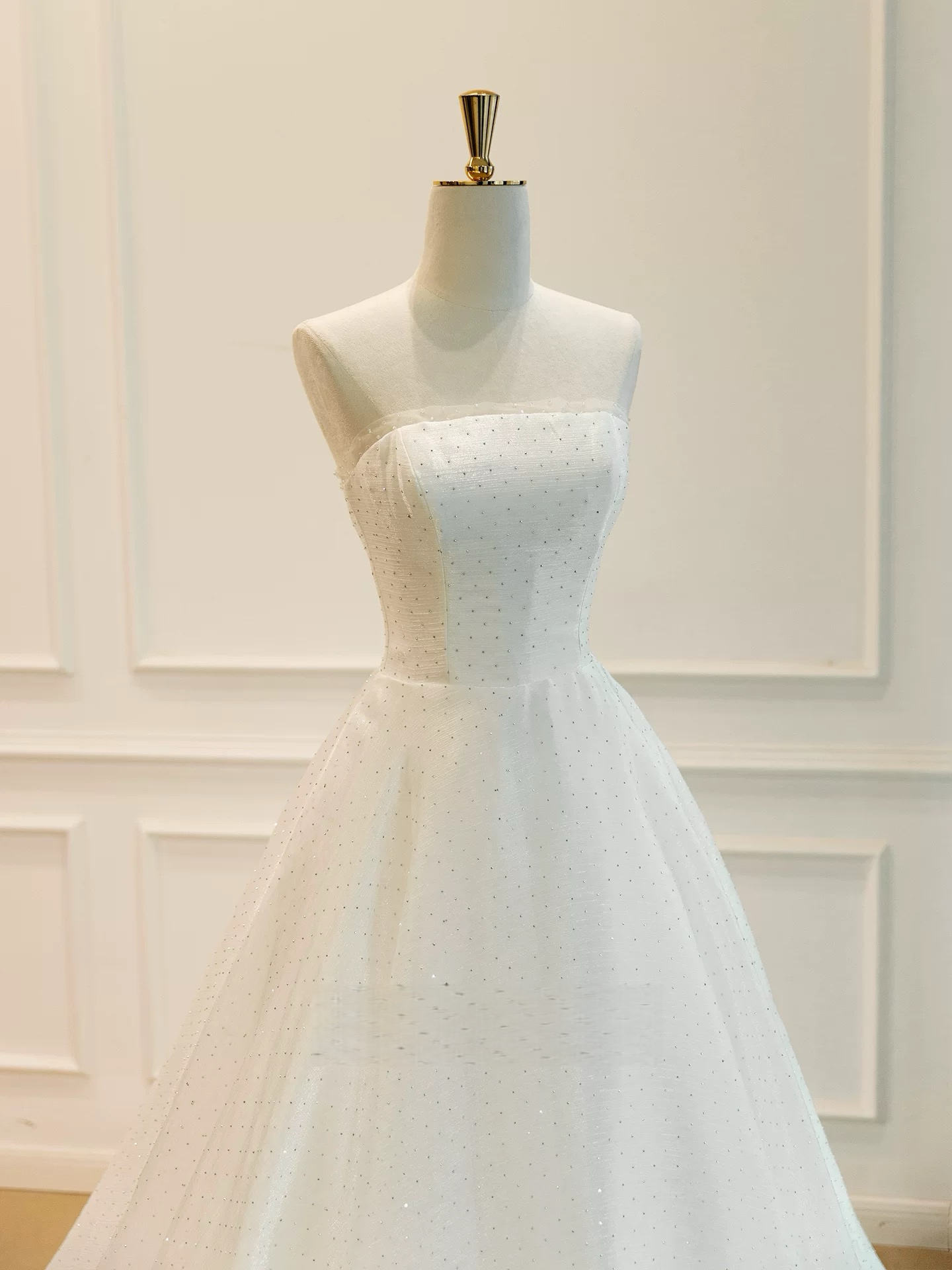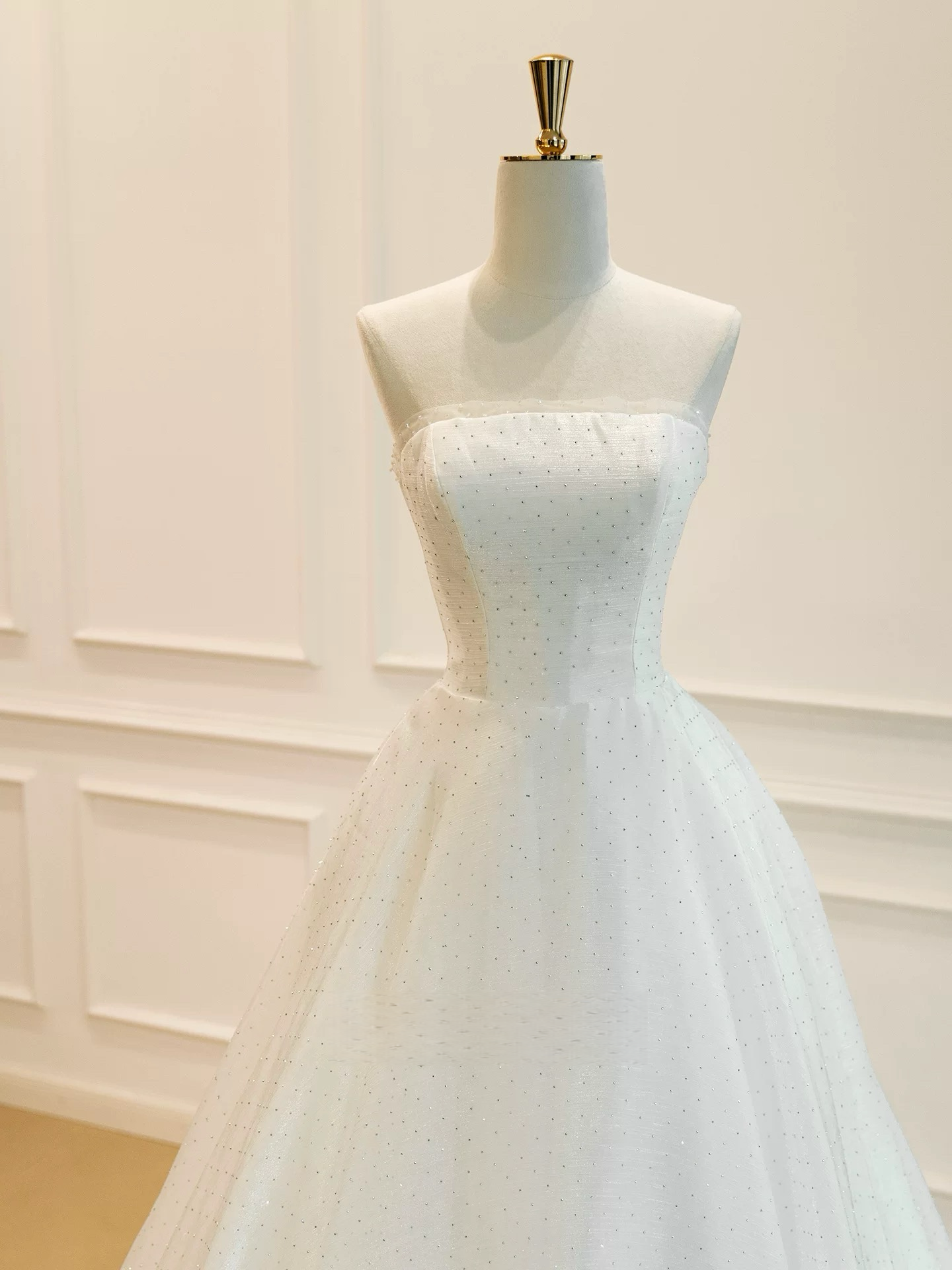 A-Line Organza White Long Prom Dress, White Long Evening Dress