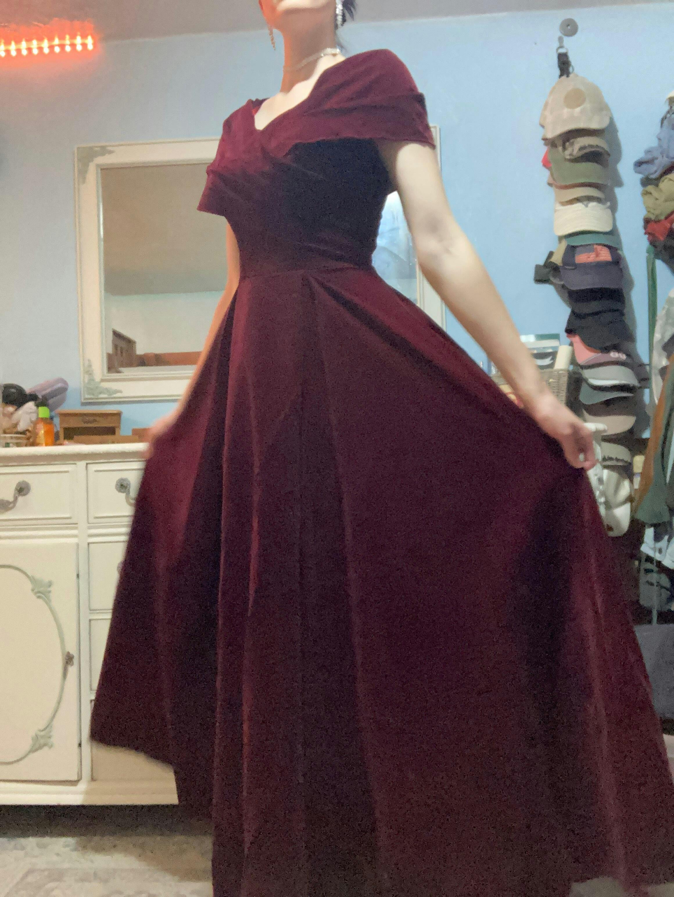 This is a very nice warm velvet dress there’s no zippers or anything. This is a lace up dress. The quality is very nice and it is lined with a silky fabric. I wasn’t sure if this was a illegal website at first, so I paid for it with PayPal. I suggest doing the same thing just in case for safety. I love this dress and it one of my fav!!